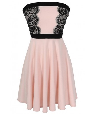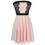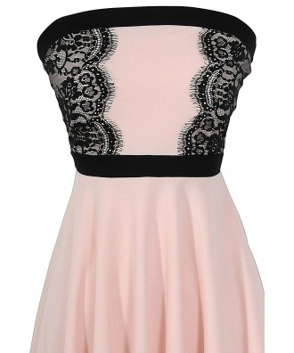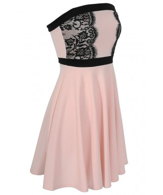 Alex A-Line Lace Trim Dress in Pink