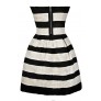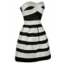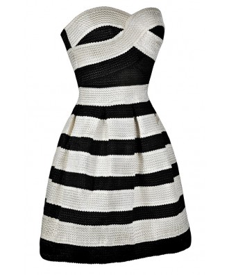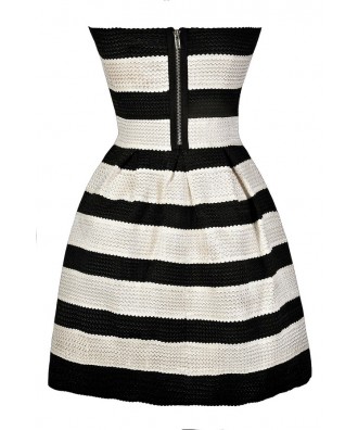 FINAL SALE. You won't be committing any fashion crimes when you show up in this effortlessly stylish A-line stripe dress. The classic colors of black and ivory create a bold graphic look. The Behind Bars Black and Ivory Stripe A-Line Dress is made of a thick textured fabric with a bit of stretch to it. It has a strapless sweetheart neckline, empire waist, and structured A-line cut. Bands of ivory and black fabric crisscross at the bust, forming a unique design. The attached skirt continues the black and ivory stripe motif in a horizontal pattern. An exposed back zipper completes this dress. The Behind Bars Black and Ivory Stripe A-Line Dress looks nice paired with black pumps, wedges, or strappy heels for a chic and fun look.