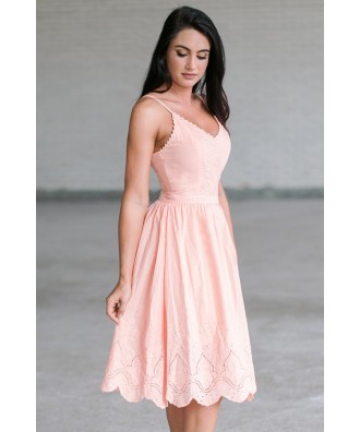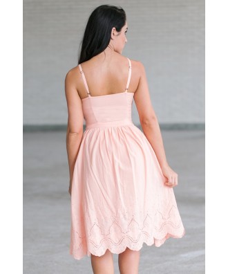 Blink Of An Eyelet A-Line Midi Dress in Apricot