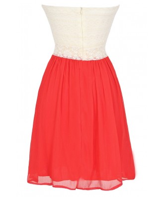 This cheerful chiffon and lace dress has a boho-chic touch. The Bright Days Chiffon and Lace Dress is fully lined except at the waistband, which is semi-sheer. It has a strapless sweetheart neckline and lightly padded bust. The bust is made of ivory lace with a unique circle pattern. The empire waistband is made of semi-sheer floral lace. The attached skirt, made of chiffon, has a flowy A-line cut. A hidden back zipper completes this dress. The Bright Days Chiffon and Lace Dress would look nice dressed up with pumps or wedges—or wear it more casually with flat sandals and an oversized bag. This is a great wardrobe staple you’ll love to wear.