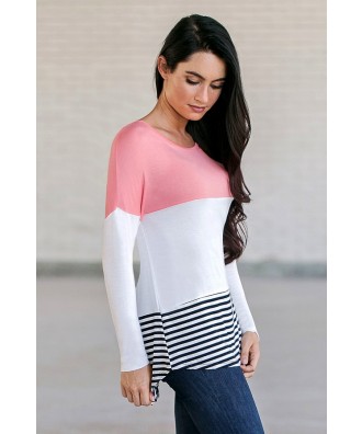 Coral Pink Colorblock Top, Cute Game Day Outfit