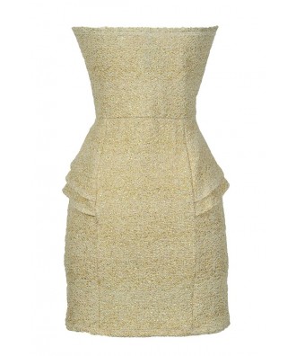Glitter and Fame Ivory and Gold Strapless Peplum Dress