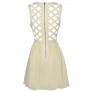 This fun summer dress combines a toned down neutral beige fabric with awesome lattice details at the neckline and back for a look no one will forget. The Lattice Have A Party Beige Dress is fully lined below the bust but is semi sheer a the neckline and top back. It is made of a flowy gauzy fabric in classic beige. The best part of this dress has to be the cool crisscross lattice fabric design at the neckline and top back, showing just enough skin to make you feel flirty without feeling overexposed. An exposed back zipper completes this dress. The Lattice Have A Party Beige Dress would look nice paired with beige or nude pumps, wedges, or strappy heels. Another option is to pair this dress with black shoes and accessories for contrast. This is an a cute summer dress that would be perfect to wear to a party or out on date night with someone special.