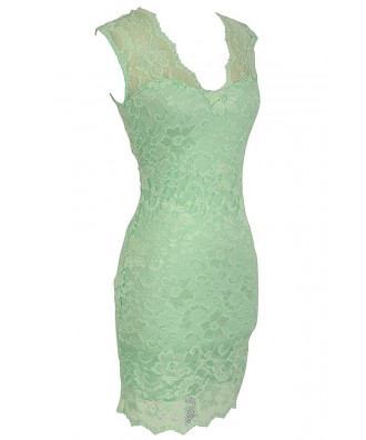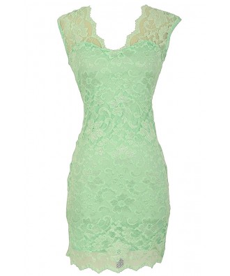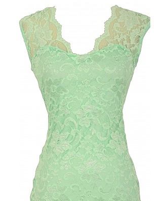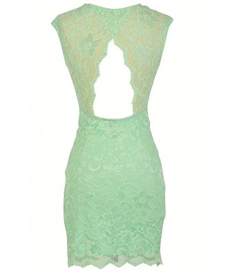Maegan Floral Lace Open Back Fitted Dress in Mint