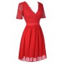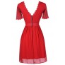 This awesome lace and chiffon dresses is figure-flattering and perfect for any upcoming party or social event. It is one of our favorites! The Merry Engagement Lace and Chiffon Dress is fully lined, except at the sleeves, which are semi-sheer. The top is made of floral lace and has a V-neckline, short sleeves, and banded empire waist. The attached skirt is made of chiffon and has a flowy cut. An exposed back zipper completes this dress. The Merry Engagement Lce and Chiffon Dress would look perfect paired with pumps or strappy heels and some pretty jewelry for any upcoming party or event.