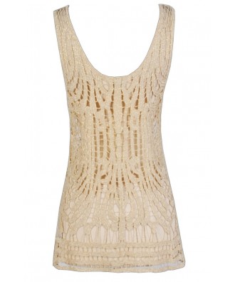 Looking for a more casual alternative to all those glittery party dresses out there? Consider this cute--and casual open knit metallic crochet top. The Metallic Crochet Open Knit Top is made entirely of a sparkly gold metallic crochet fabric. It has an open knit design and is sheer--you will want to wear a fitted nude or gold tank or cami underneath. This top has a boho glam vibe we love. It looks great paired with black skinnies and heels or denim and heels. You can also wear this top over a fitted dress for a unique bohemian look. Another option is to wear it with a contrast blazer or jacket over it on cool evenings.