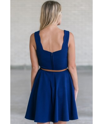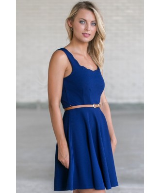 You will look lovely in this adorable scalloped neckline A-line dress! The Oh So Lovely Scalloped Belted Dress is made of a textured polyester and spandex blend. This cute dress is A-line cut, scalloped neckline and thick straps. The dress is lined only at bust. It has an included belt that wraps around the waist, creating contrast. The belt is removable allowing you to add a different belt or sash- creating a new look! Navy is a good neutral and we love the fun scalloped twist. A hidden back zipper completes this dress. We recommend pairing this dress with wedges, flats, or sandals and simple jewelry.