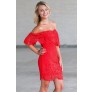 Put A Ring On It Crochet Lace Off Shoulder Dress in Red