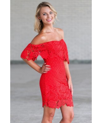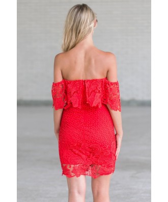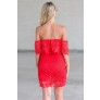 You have added Put A Ring On It Crochet Lace Off Shoulder Dress in Red into Wishlist.