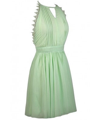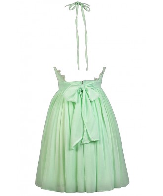 Sandra Tie Back Halter Chiffon Dress in Lime Mint