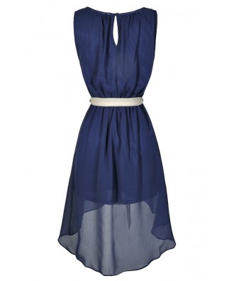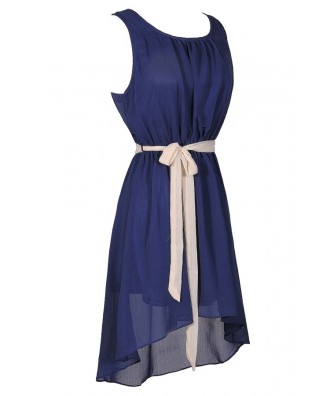 Simpler Times High Low Contrast Sash Dress in Blue/Beige
