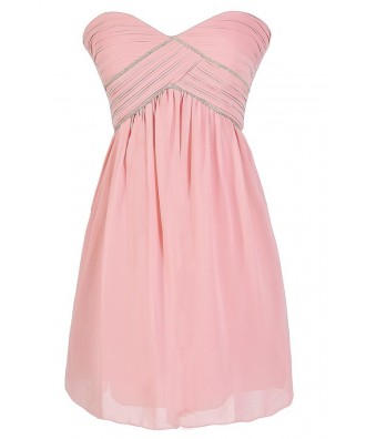 This sparkling embellished designer dress is both girly and sophisticated at the same time. This would make a cute bridesmaid dress, a cute party dress, or even a pretty prom dress. The This Magic Moment Embellished Designer Dress is fully lined. It has a sweetheart neckline, lightly padded bust, and adjustable and removable spaghetti straps so that you can decide whether you want to wear it strapless or not. The top part of the dress is made of pleated chiffon and has a unique design with two rows of sparkling seed beads. The attached skirt has a flowy cut and an invisible layer of tulle underneath for a bit of volume. A hidden back zipper completes this dress. The This Magic Moment Embellished Designer Dress would look nice paired with pumps or strappy metallic heels and some delicate jewelry.